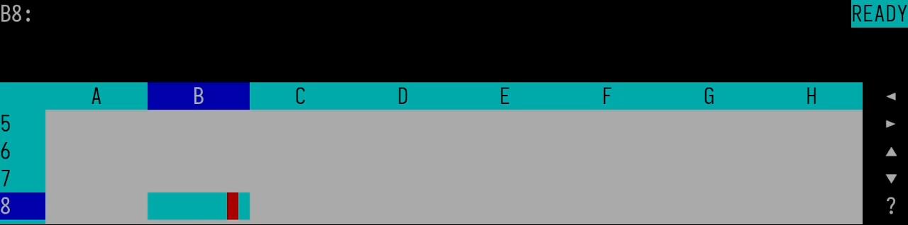 The interface can be controlled by mouse in DOS; the arrows on the right are for moving around the worksheet via mouse.