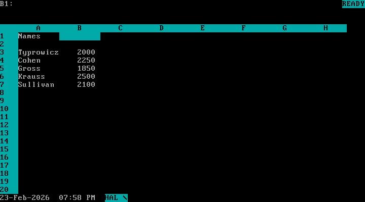 I have one goal in learning Lotus 1-2-3. I want to understand what it did that was so superior to my beloved VisiCalc that it practically wiped them out in the first year of launch. Kapor had projected first year 1-2-3 sales of US$1M, but did US$53M instead.